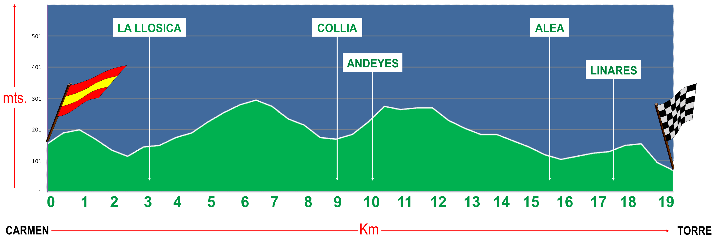 Tras pasar la zona de Las Coronas, comienza un difi cil descenso hacia el pueblo de Collia, donde cogeremos el mitico cruce a la derecha, cambiando el asfalto por otro un poco mas roto. A partir de este punto comienza una zona en subida hasta “Casa Marcial”.