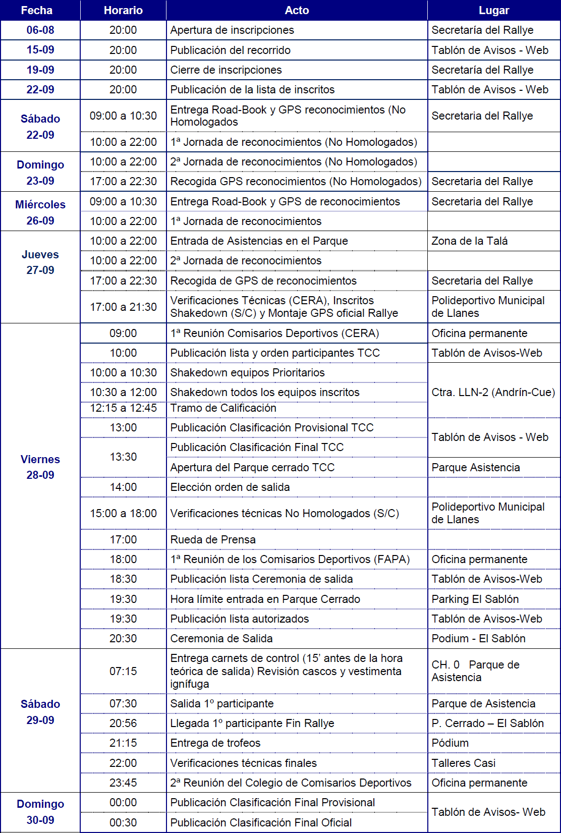 ITINERARIO HORARIO