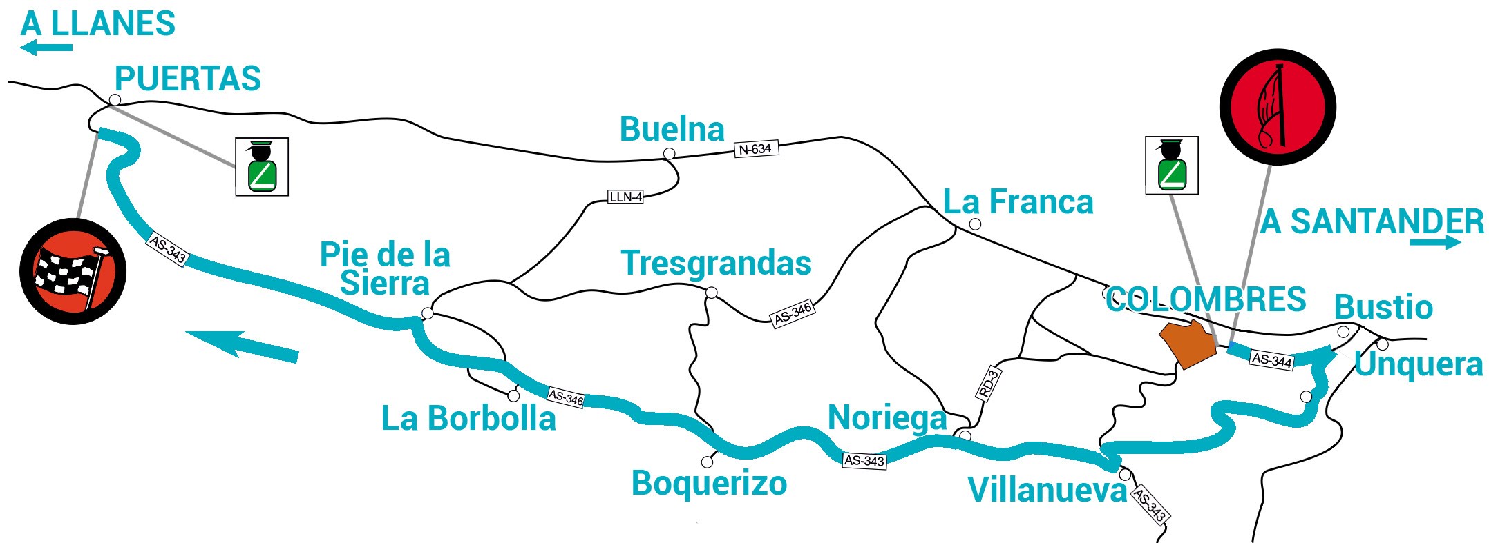 La salida se sitúa en el mismo pueblo de Colombres, en donde los pilotos afrontarán 2 kilómetros en bajada de asfalto ancho y buen firme para llegar al espectacular cruce de 180º en las cercanías de Bustio y Unquera.