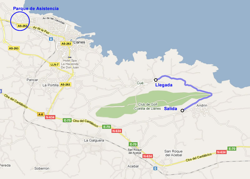 El tramo escogido denominado "La Garita" es la carretera de Andrin hasta Cue LLN-2, con un recorrido de unos 2,7 kms.